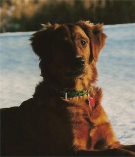 | Registered Name: Light it up Blazin' Bell SN84452406 Call Name: Tinkerbell aka Bell Breed: Golden Retriever Birthday: 6-15-01 Sex: Female(spayed) Height: 22.5 inches Weight: 50lbs Nicknames: Smelly, Turkey, Turks, Boogs Favorite Food: Anything remotely edible Favorite Activity: Swimming & Retrieving & Eating Favorite Toys: Tennis Balls and BIG stuffed animals Best Buddies: Diesel & Qwik Favorite Website: www.dockdogs.com CLICK HERE TO VIEW PEDIGREE I got Bell as a 8 week old pup. I had been working for a dog groomer and loved her female, Golden Retriever, Winnie. She was such a sweetie and cried and cried to greet me every time I came to work. We had lost our old dog, Sarah a Sheltie, Springer Spaniel mix the year before and were looking for another dog in addition to our Black, Miniature Schnauzer, Ebony. Me and my mom talked it over and decided to get a Winnie puppy. Since my Dad had always been the one to get the family dogs we thought we would surprise him! So I waited for her to come into season, then waited till she welped, I got to babysit the litter when they were just tiny pups. Then I finally took her home and my dad wasn't too happy. We had stepped on his toes a bit :) But now my Dad and Bell are inseparable. He babys her to no end and brings pictures of her to work to show all his friends. She always cries and brings him toys when he comes home. Bell was a great first dog for me to start competing with. She was up for anything and always gave 110%. We competed in Agility, Obedience, Dock Jumping, Rally Obedience and Field. Even though she would be pissed at me if I called her "retired" I have to hold her back from doing anything that might overly stress her aging body. She is still very active, but is breaking down physically. I could say she is slowing down....but she's really not. She's as crazy as ever and dosen't hold back on anything she does. So I need to watch out for her well being. She is a fanatic retriever and anything that includes water. Luckily swimming is a great low impact activity! So we swim lots n lots.....she NEVER tires of swimming. I don't know what I would do without my "Smelly Dog". Shes a great partner has taught me a lot. |