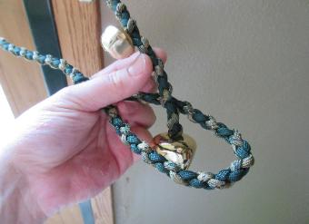 | Hand Braided Paracord Potty Bells are colorful and useful! Teach your dog to tell you when he has to go out. Potty Bells can be placed on a door knob or handle. Pick 2 colors Choose between Silver or Brass Bells I do have a few other colored bells Length is 30 inches, but can be made any length you prefer $12.00 each |